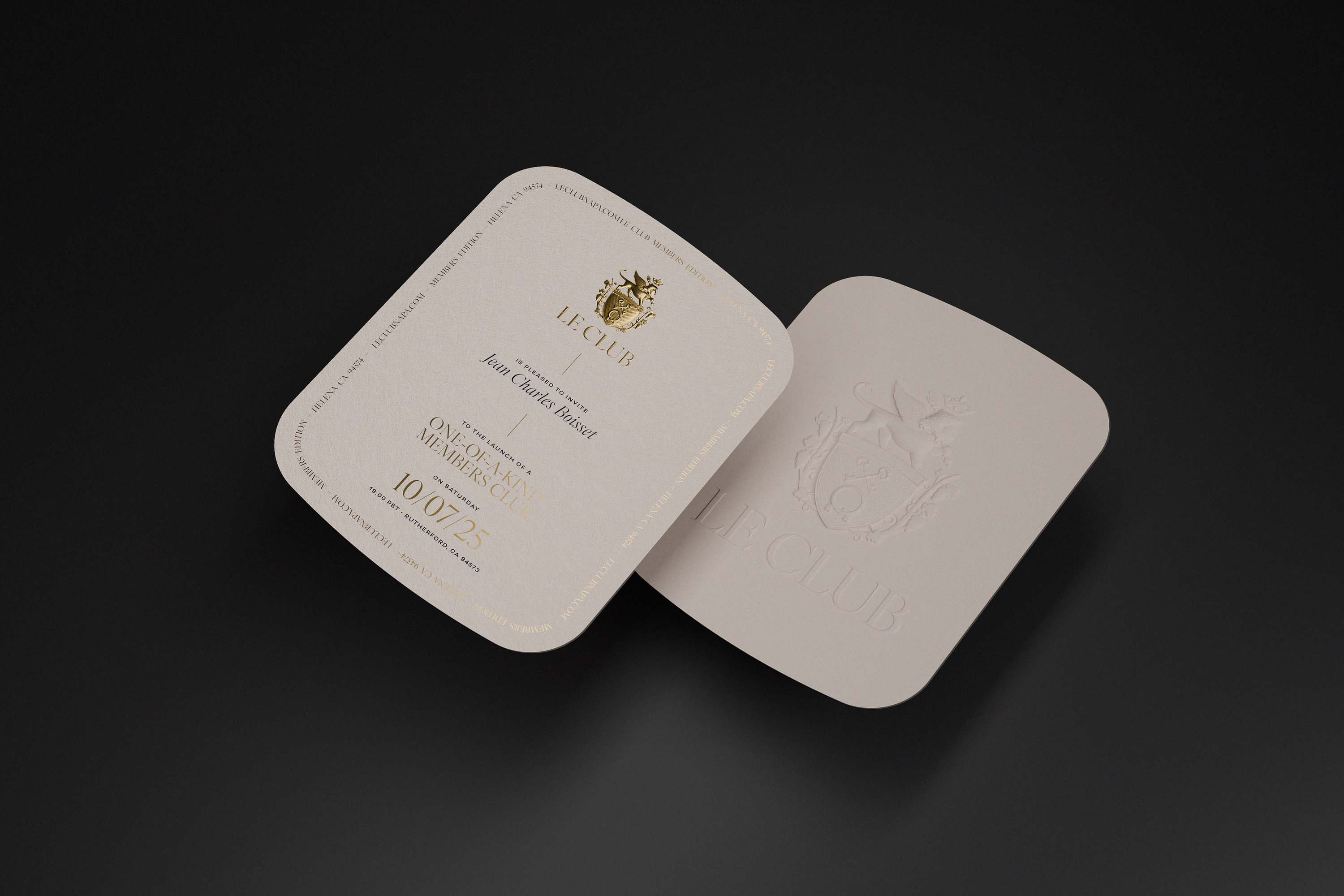 Le Club was envisioned as a refined social world where wine, art, and community meet. Rooted in symbolic storytelling and the ritual of craftsmanship, the brand draws from noble heritage and the timeless culture of winemaking. As a long-standing partner, designlaboratory* was tasked with creating its identity, resulting in an intricate emblem that captures the spirit of exclusivity. The logomark uses smooth engraved lines for a clean yet detailed aesthetic and brings together a curated set of symbols, from the crowned leopard and crossed keys to the fleur-de-lis, crown, grapevines, and sabre. These emblems cohesively build the foundation for the Le Club brand, expressing its sophistication, tradition, and elevated experience.
